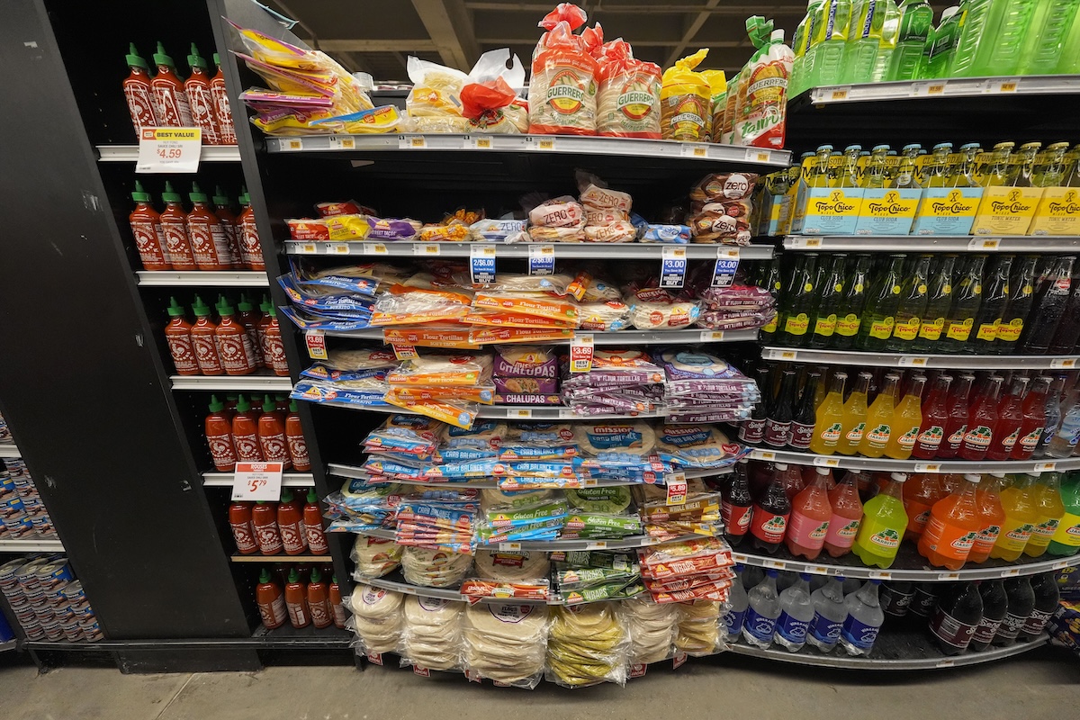 Tortillas in plastic packaging are seen near glass and plastic bottles at a grocery store in New Orleans, April 17, 2024. People are increasingly breathing, eating and drinking tiny particles of plastic. (AP)