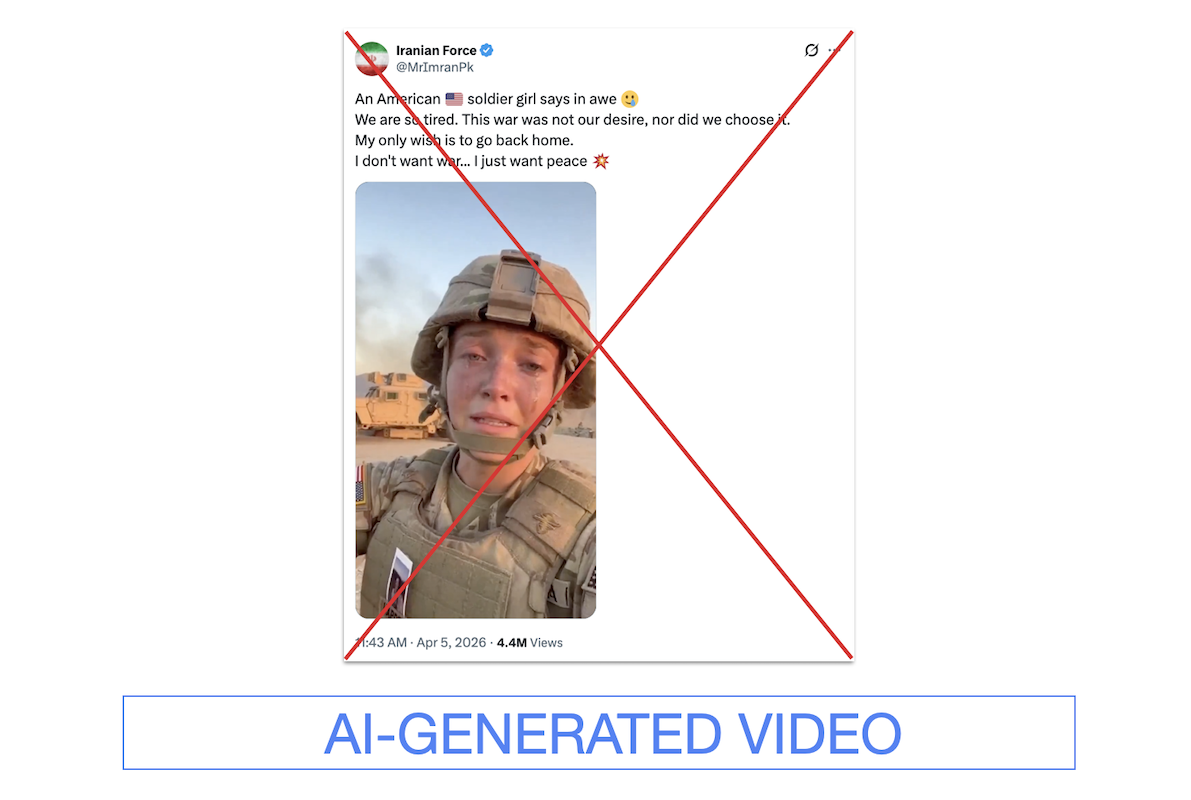 Does this video show a US soldier crying and saying she misses home? No, it’s AI