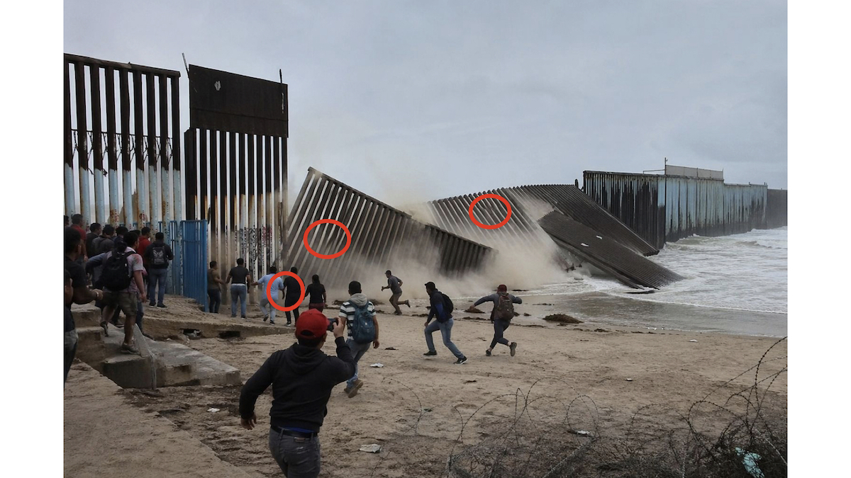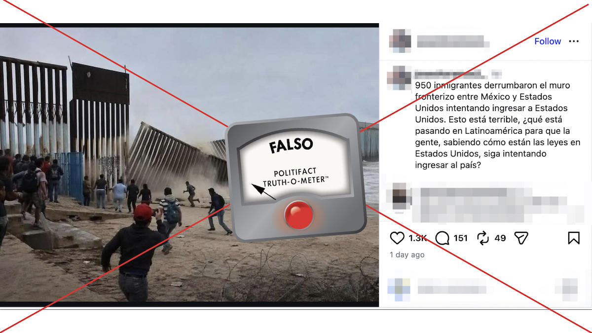Pero no hay evidencia de que inmigrantes derribaron parte del muro fronterizo.